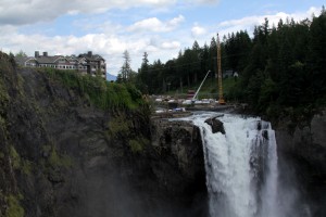 Our next drive was to the Sol Duc hot springs and falls. I was actually pretty excited about this; there’s a lodge there run by the National Park, and the pictures looked beautiful. To my disappointment, however, the hot springs had been turned into a commercial area and have been completely diverted into wading pools packed full of people. (Think of several chlorinated kiddie wading pools filled to the brim with people). I’m not sure where the pictures of beautiful rock pools in the brochure came from, but all that is left is a concrete water park. We thanked our instincts for not staying at the springs and hiked onward to see the Sol Duc falls. The falls were beautiful, although somewhat less impressive after having stayed by the much larger Snoqualmie Falls.